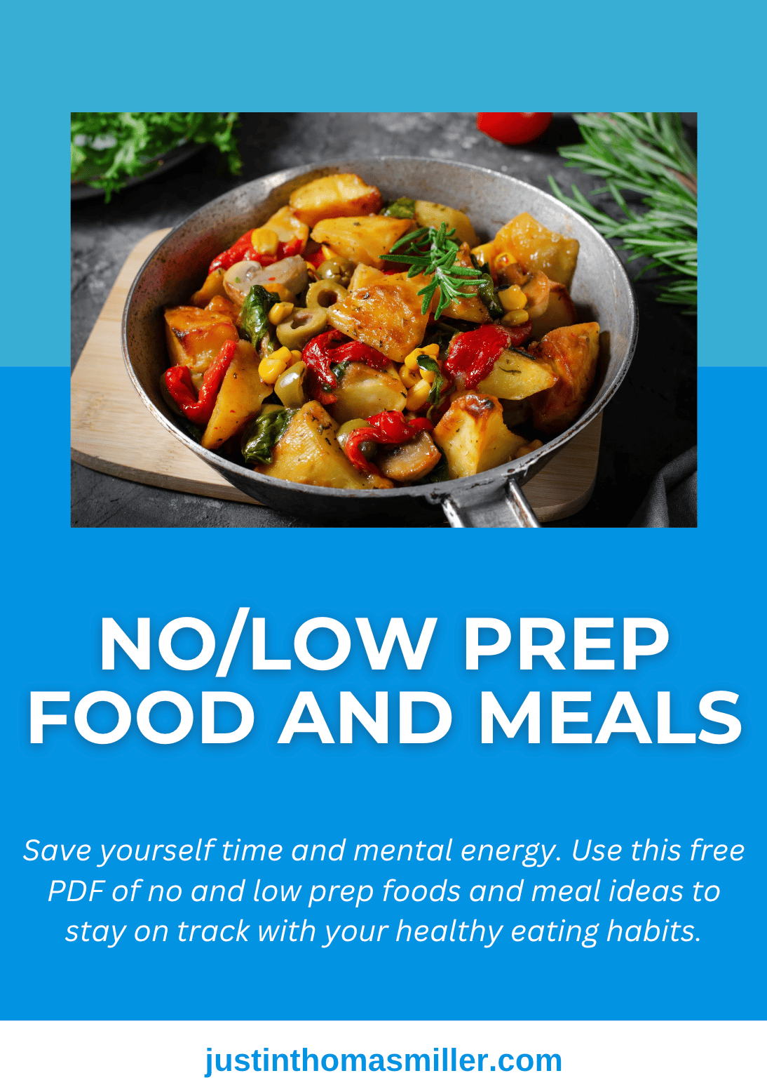 A free downloadable pdf that includes no/low prep food and meal ideas. Along with an example low prep meal plan.